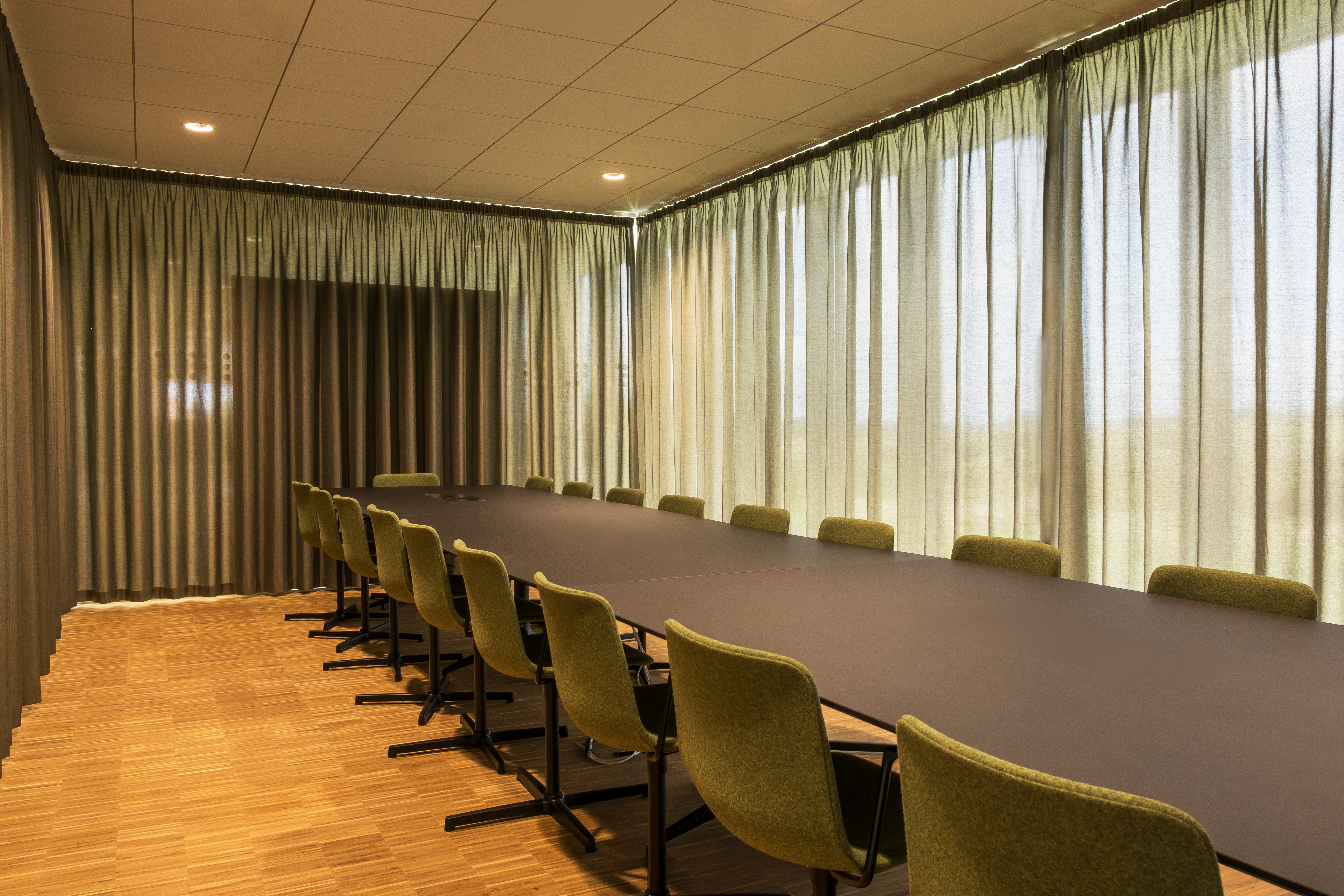 SAHL Arkitekter valgte det vindstabile zipper-system* til udvendig solafskærmning. Systemet er funktionsdygtigt i vindhastigheder op til 20 m/s. Dugen bliver fastholdt ved hjælp af et lynlåssystem, som øger stabiliteten og giver en endnu tættere afskærmning end den, der kendes fra traditionelle screens.
