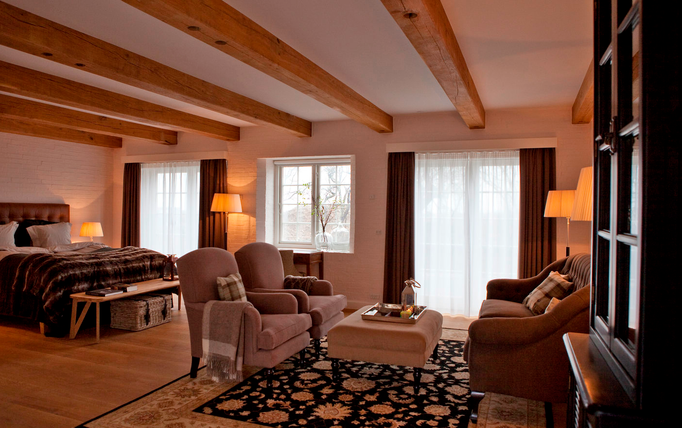 I samarbejde med Designbrokers har Fischer leveret gardiner og solgardiner til alle værelser på Blæsenborg.