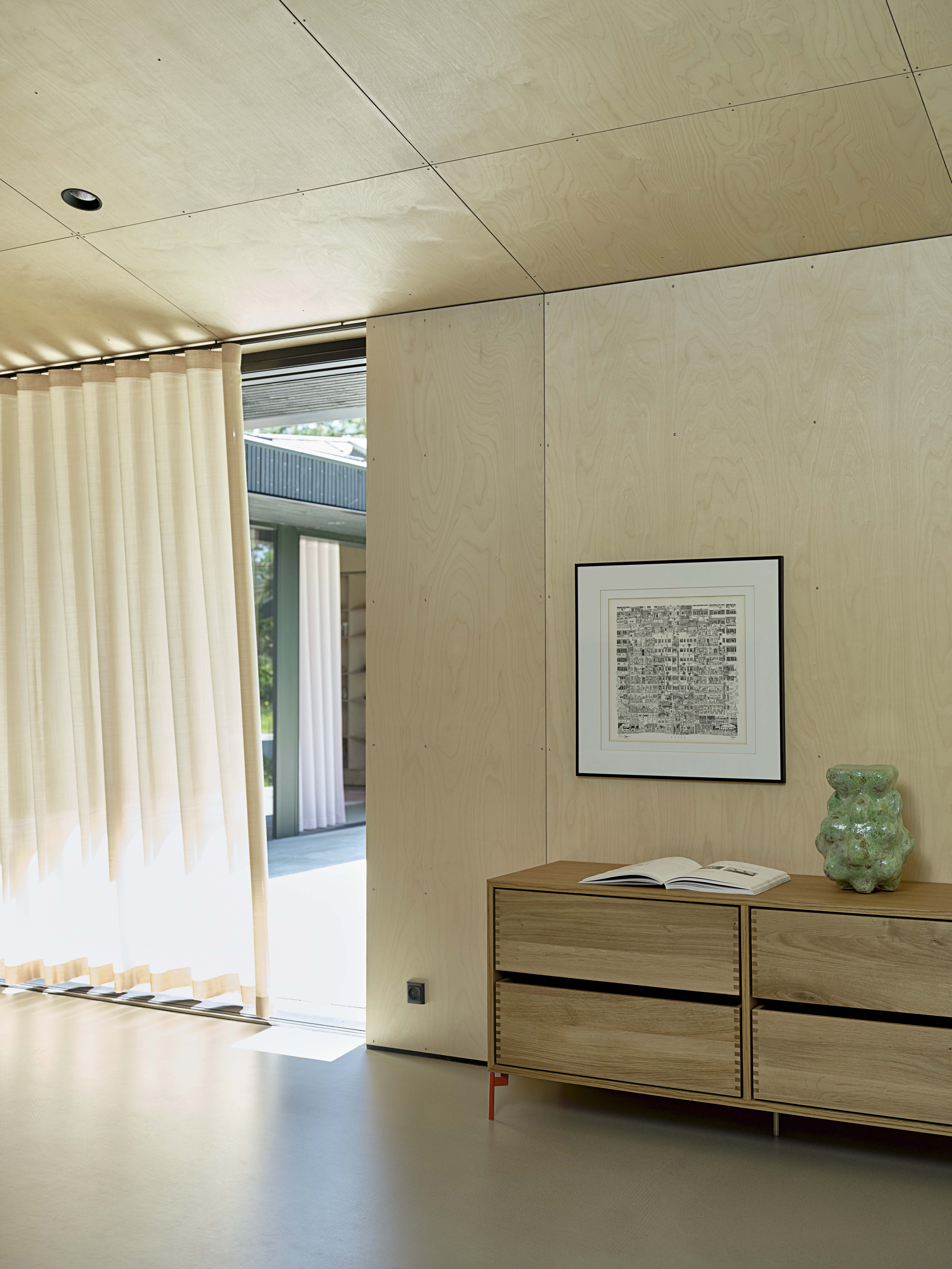 Bløde stofgardiner balancerer æstetik og funktionalitet i et rum, hvor kreativitet og ro får lov til at smelte sammen.