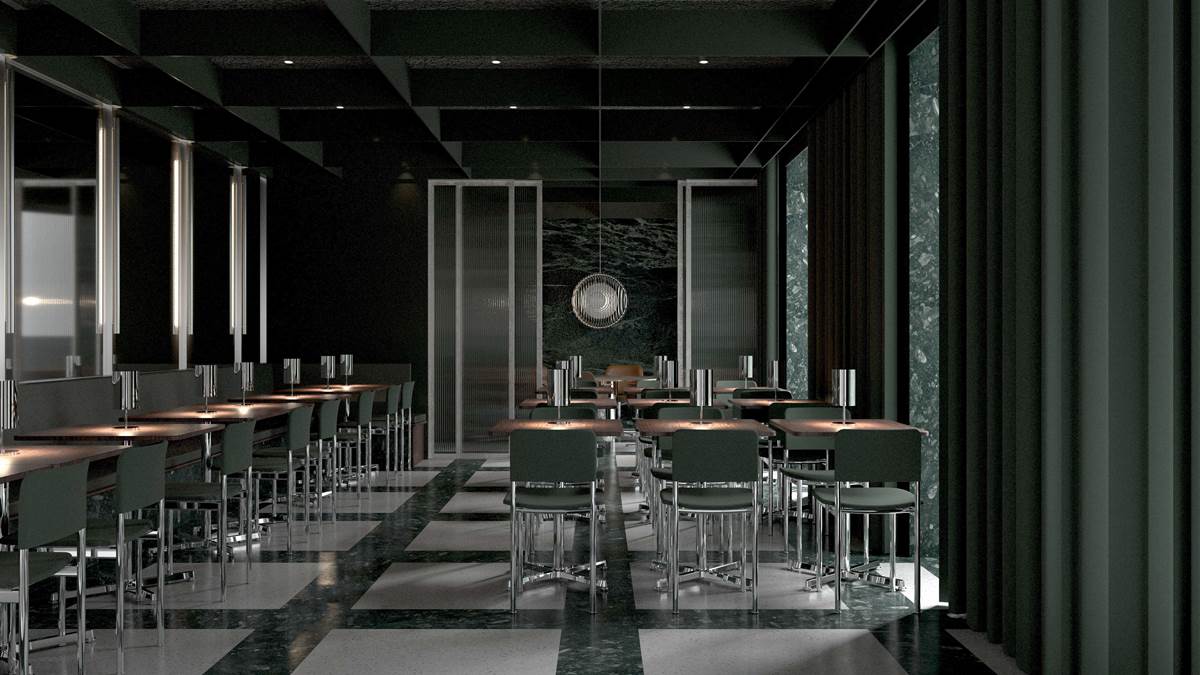 Stueetagen rummer to lobbyer og to restauranter. Mod nord ligger Nørrebro, som er den tætte og rå bydel. Her arbejder indretningen med grå toner og et mere urbant udtryk. I lobby og restaurant filtrerer et gråt, let metallisk netdessin lyset mod gaden. Gardinet skærmer og bevarer samtidig forbindelsen til byrummet.