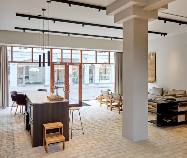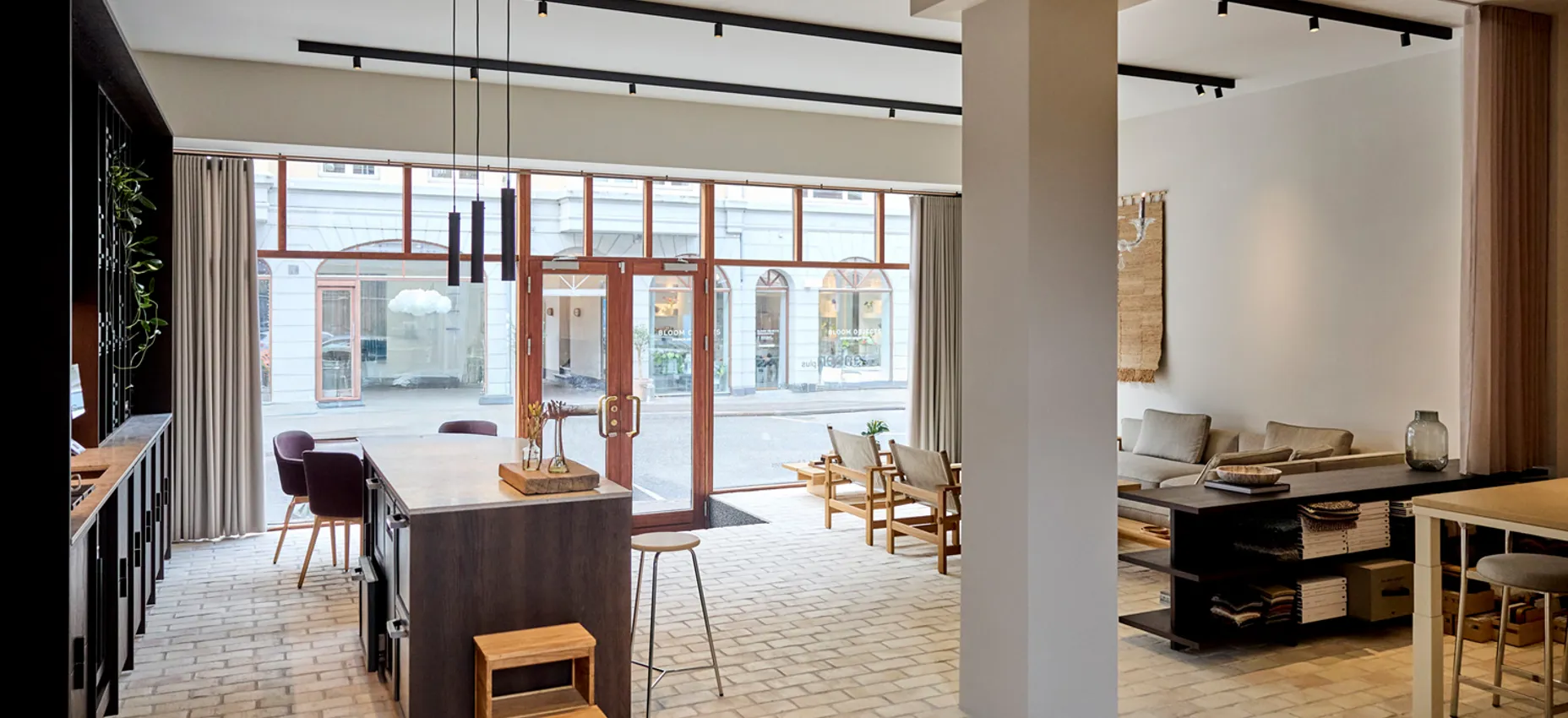 JENSENplus’ showroom på handelsgaden i Aarhus fungerer som et levende katalog. Et sted, hvor møblerne løbende indgår i nye konstellationer, og hvor stemning, materialitet og funktion kan følge med forandringen.
