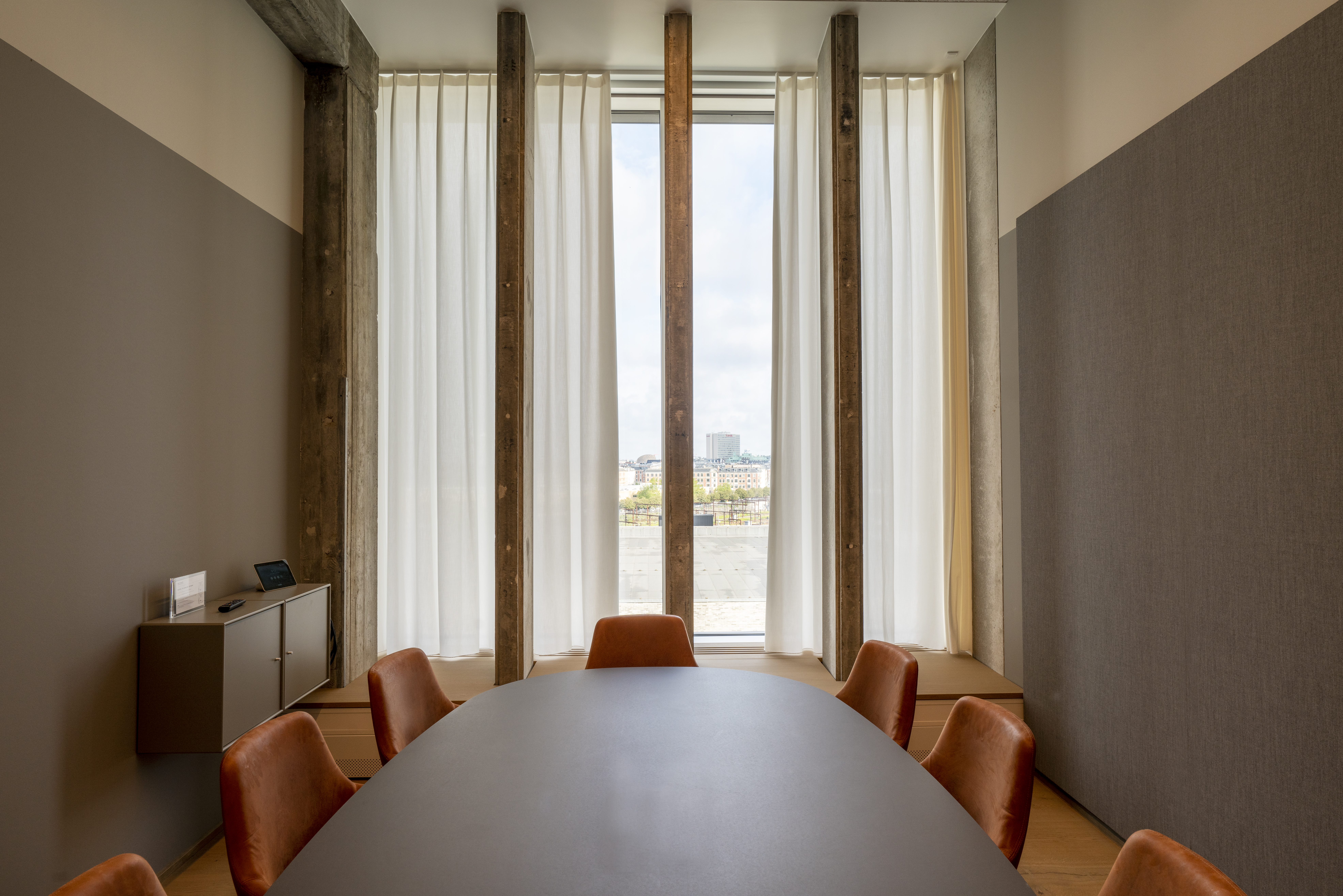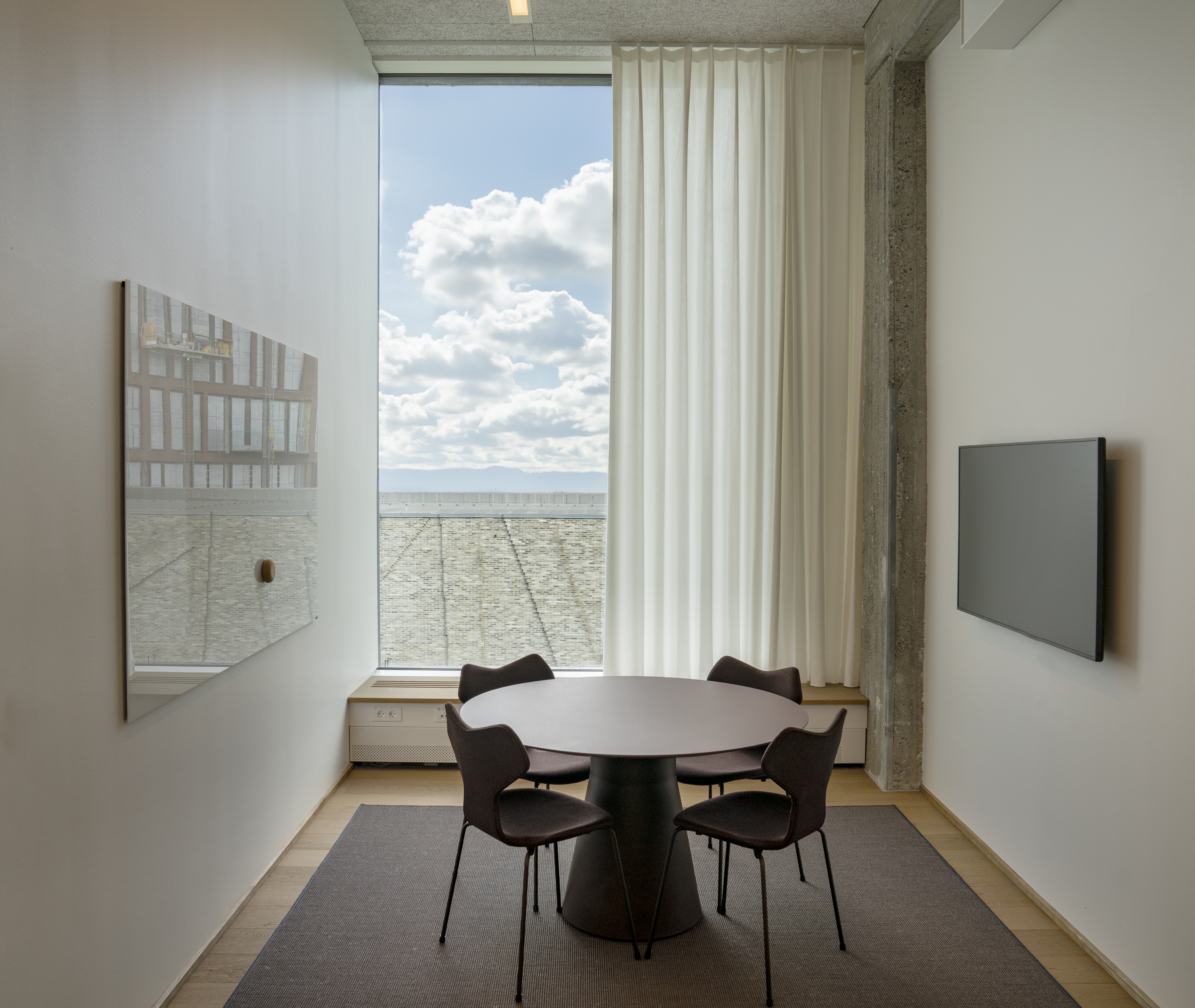 Lyse gardiner pryder alle etager, kontorer og mødelokaler, og det florlette, æstetiske valg er en helt bevidst prioritering:
