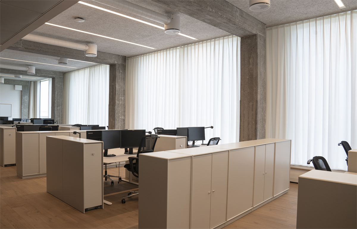 Nu og her giver løsningen både gode arbejdsforhold for medarbejderne og muligheden for udsyn til vand og himmel, når det ønskes. Alt sammen perspektiver der også er taget højde for i den tekniske løsning: