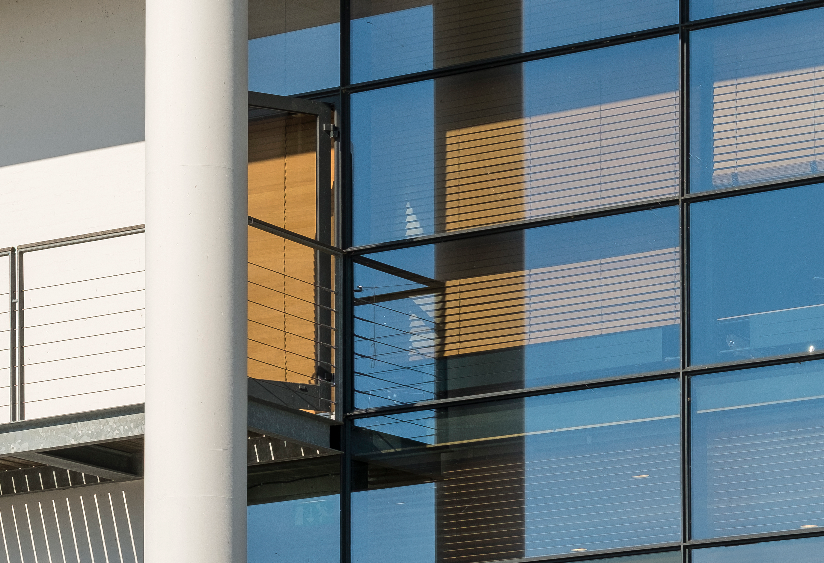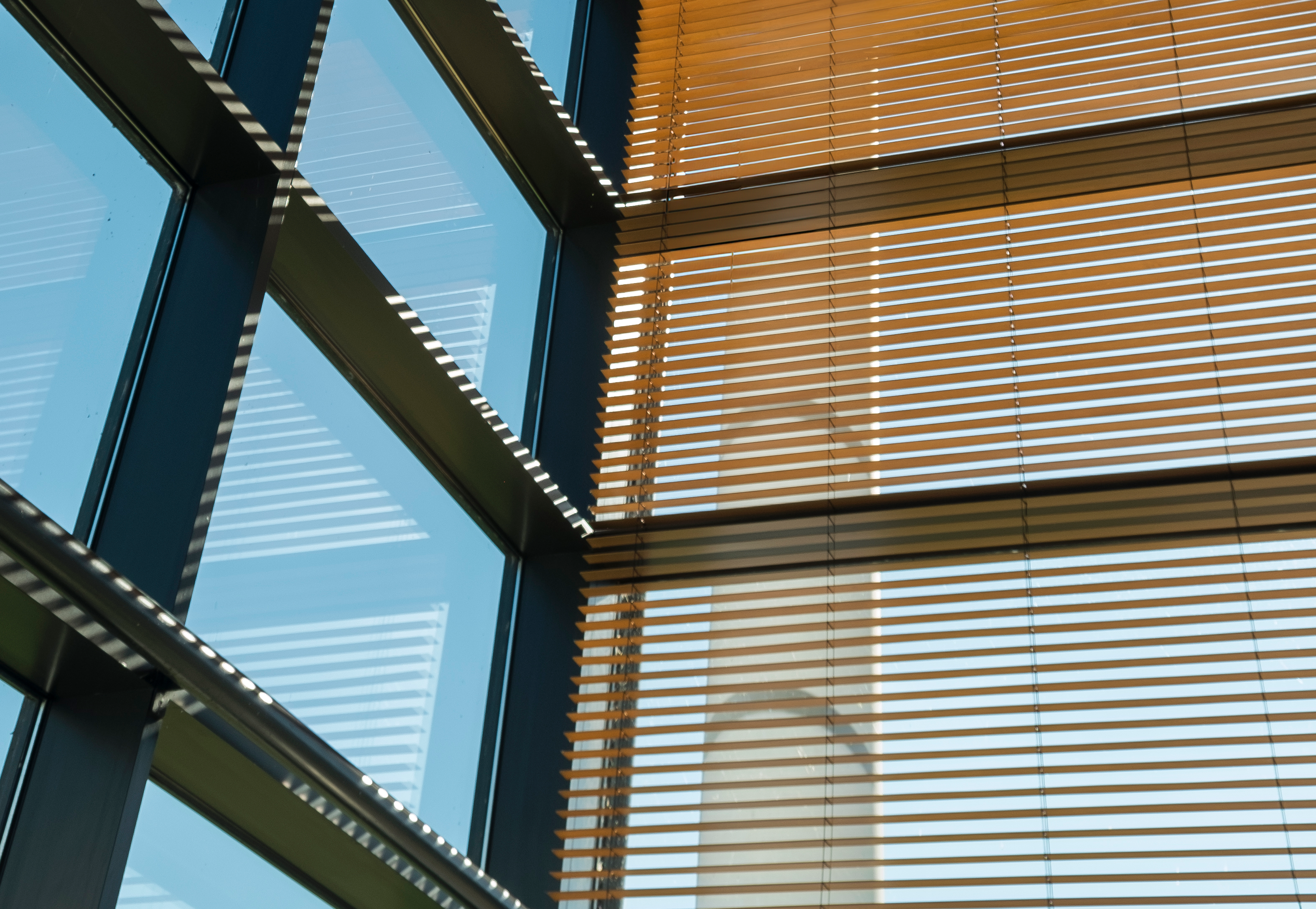 Indvendig solafskærmning i form af 50 mm træpersienner i eg med motor