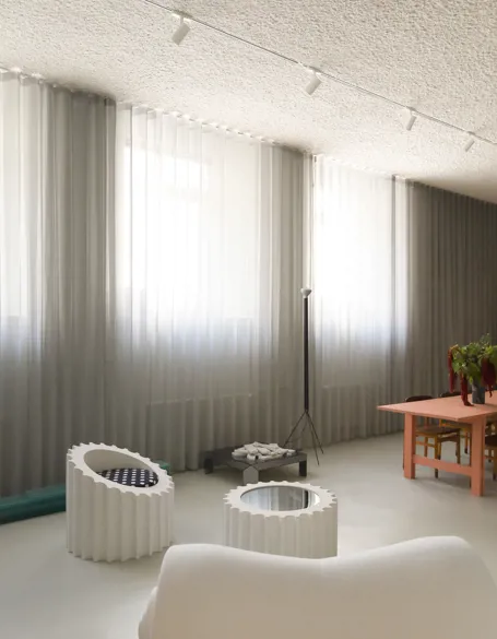 Kontor, galleri og eventlokation. Studiet skal kunne lidt af hvert. Og med et så multifaceteret rum var det vigtigt for Force Majeure, at gardinerne ikke råbte for meget, men stadig emmede af dem.