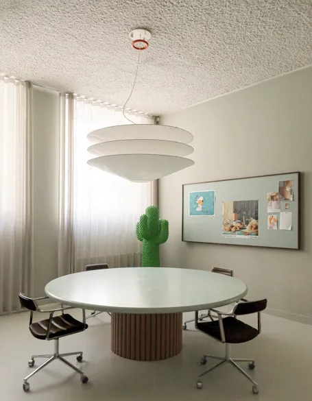 Selvom studiet befinder sig i en baggårdskælder, er der et skønt lysindfald, som bliver grebet af vores Kurage gardiner.