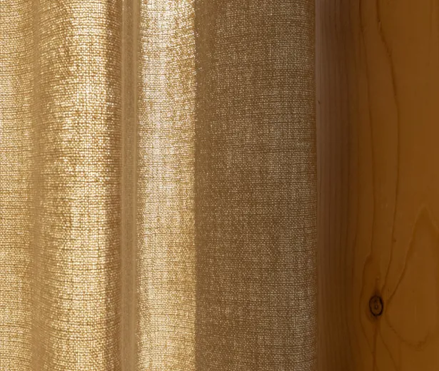 Mette Sonne Mikkelsen, der har været en del af projektteamet hos Kilden & Hindby, understreger: ”Gardinerne er valgt specifikt, fordi de er lavet af et genbrugsmateriale. Generelt har vi matchet gardinerne til materialerne i huset og anvendelsen af rummene, de skal være i.”
