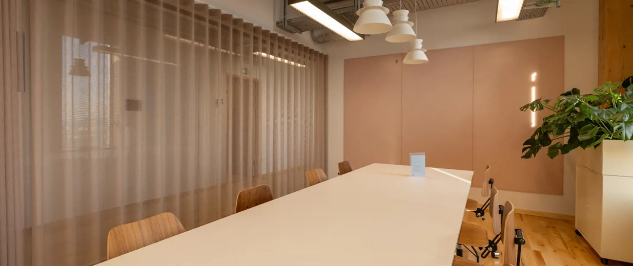 Fischer har desuden leveret bløde stofgardiner til TRÆs kantine, som dagligt bestyres af operatøren Martin Ib, samt til husets fælles mødelokaler.