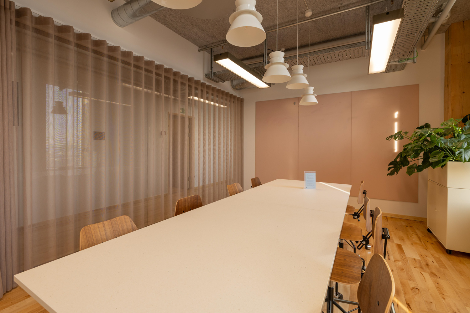 “Vi har valgt en lys nuance i kantinen og en mørkere farve i mødelokalerne i toppen. Mødelokalerne på 19. sal bliver en del af Restaurant SYV NI 13 om aften. Her har vi skelet til, hvad der passer til restaurantens øvrige indretning,” fortæller Mette Sonne Mikkelsen.
