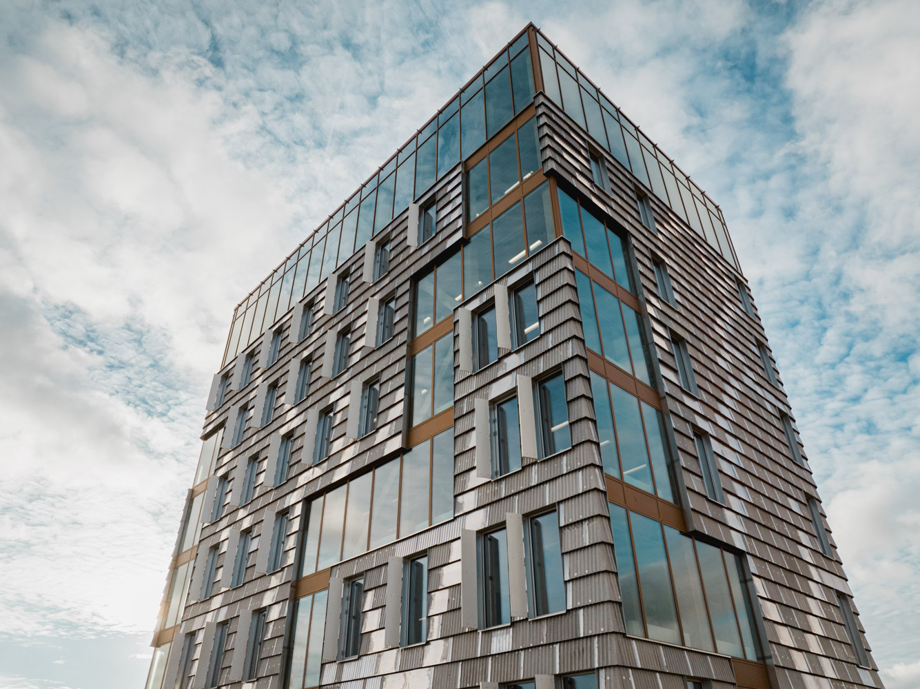 På Sydhavnen i Aarhus står TRÆ. Et imponerende træhus, der med sine 78 meter og 20 etager kan krone sig som Danmarks højeste. TRÆ er skabt til at rumme både mennesker og miljø og udgør et kontorfællesskab med plads til mange forskellige typer virksomheder. Mange etager, mange behov, og da den indvendige solafskærmning skulle udtænkes, kontaktede Kilden & Hindby os hos Fischer. Især to faktorer kom til at spille en væsentlig rolle for valget af solafskærmning. ”Lysindfaldet var vigtigt. Vi fandt et tekstil med en passende transparens, som åbner op for dagslyset og samtidig blænder af, så man kan se, hvad der sker på computerskærmene.