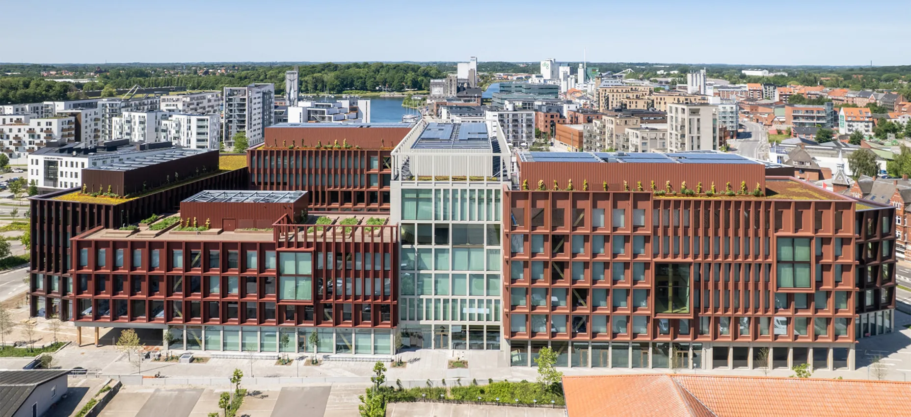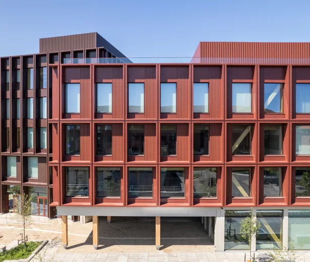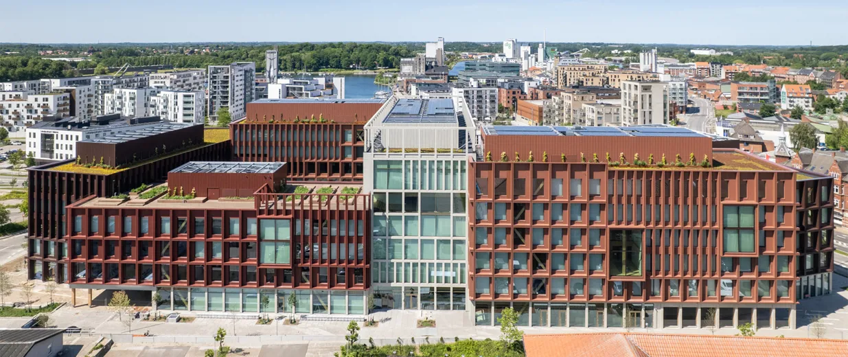 Automatiserede rullegardiner giver optimale lys- og varmeforhold i Danmarks hidtil største kontorbyggeri i træ.