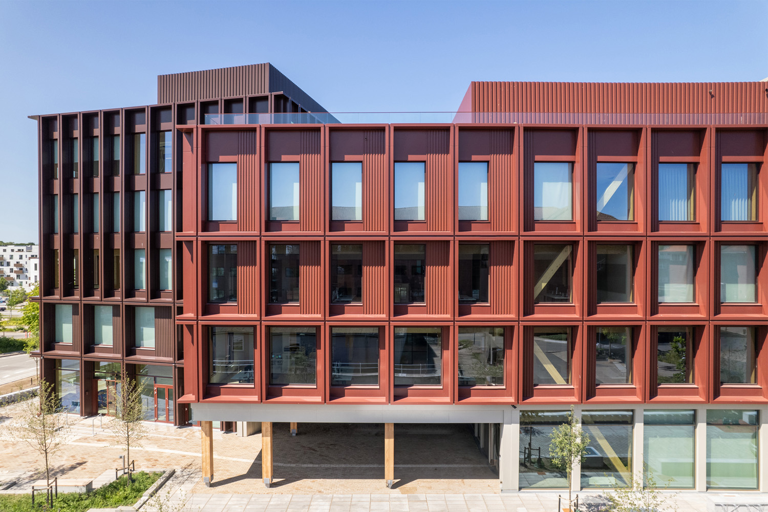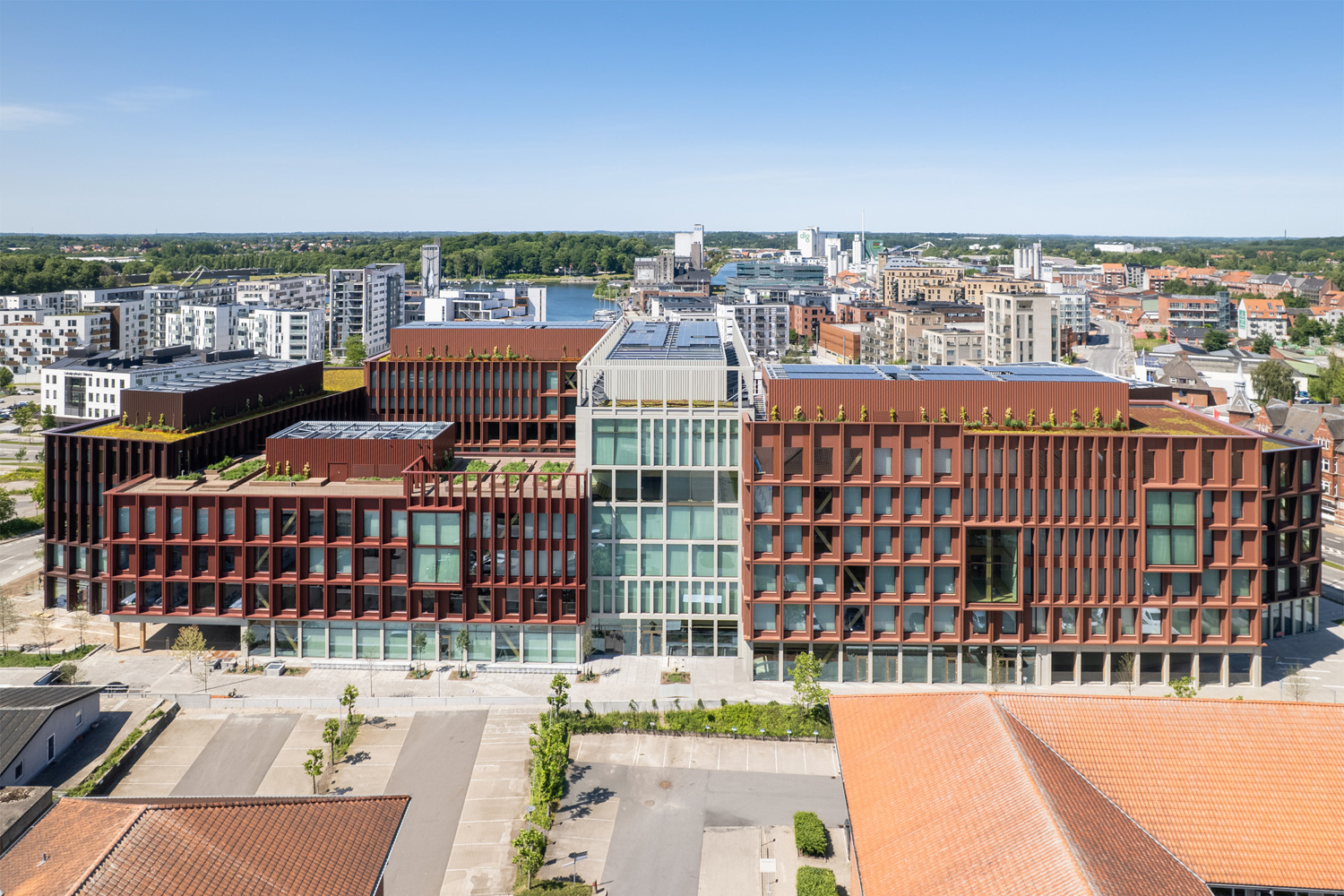 Automatiserede rullegardiner giver optimale lys- og varmeforhold i Danmarks hidtil største kontorbyggeri i træ.