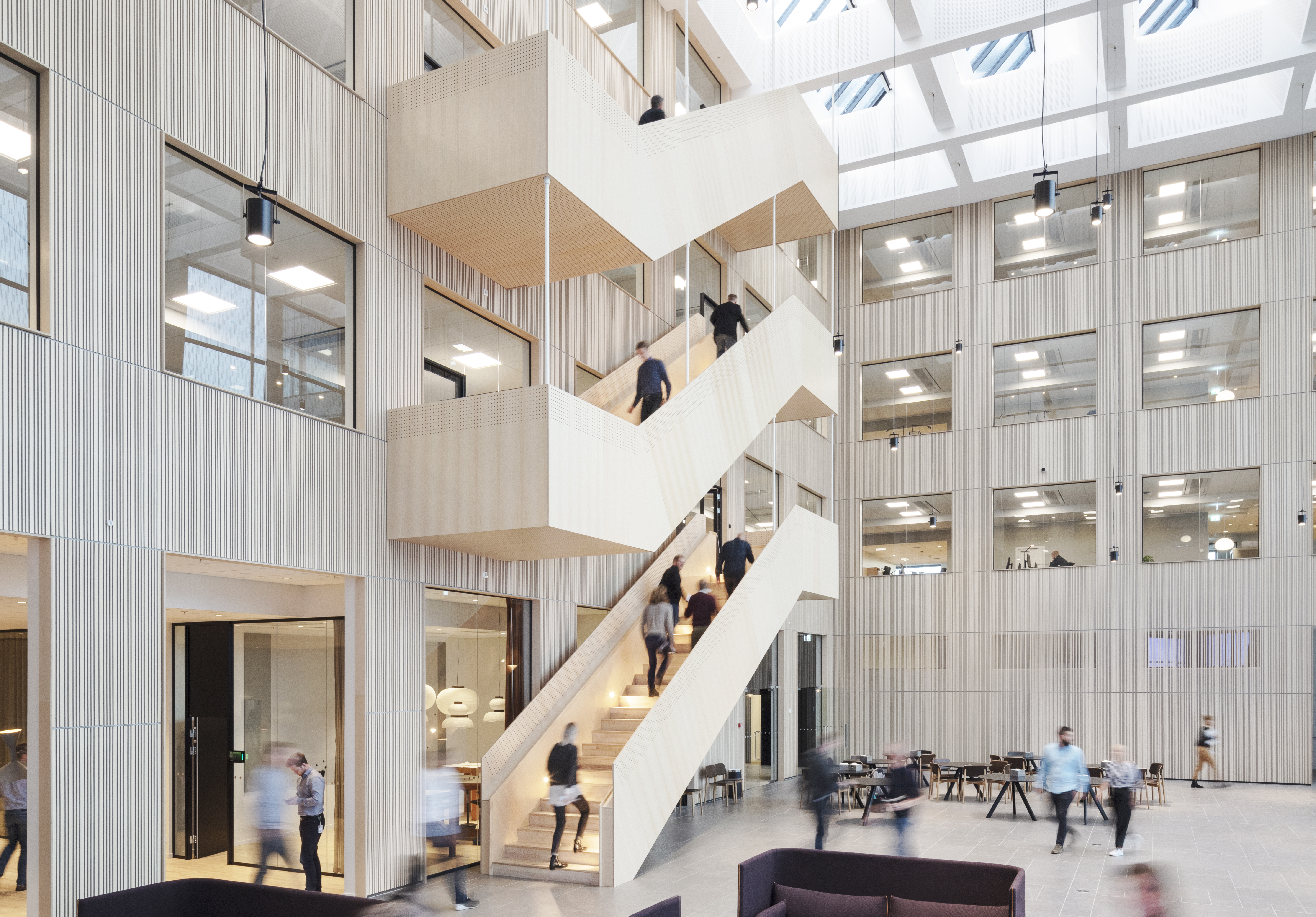 Her er akustikløsninger i lange baner. I det 4 etager høje, lyse atrium i midten af Swecos nybyggede domicil i Ørestaden foregår der blandt andet fester, møder, konferencer, spisning, socialt samvær og foredrag. Akustikken rummer det hele. Her er tyst og blødt at træde ind, og selv om der sidder folk og taler, og en gruppe gæster går rundt, forstyrrer det ingen.